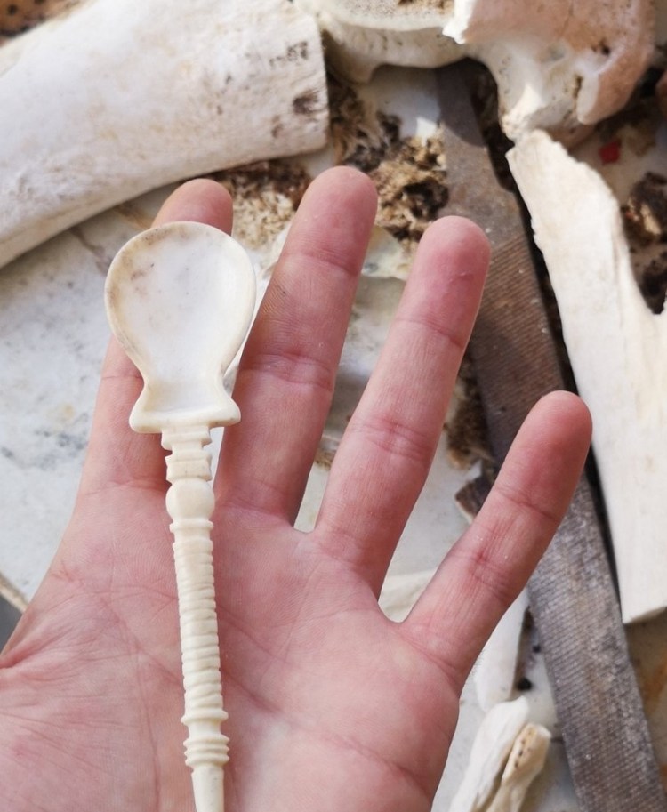 Riproduzione di cucchiaio romano in osso – in corso
