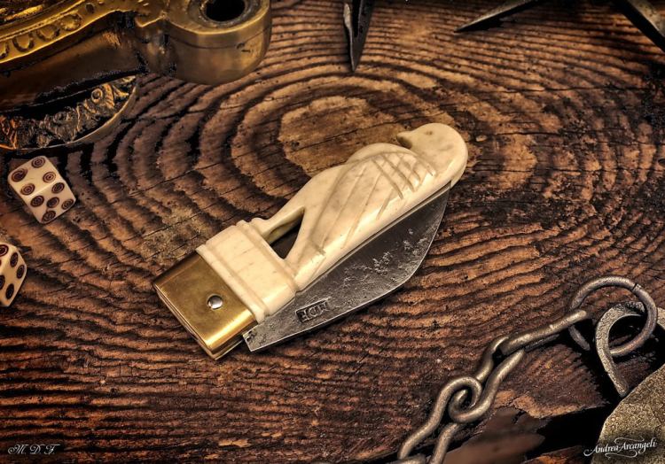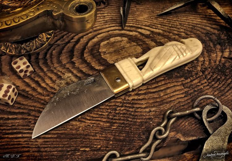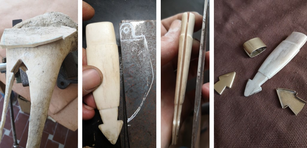 Riproduzione di coltellino con manico in osso a forma di aquila da Augusta Raurica – il coltello finito