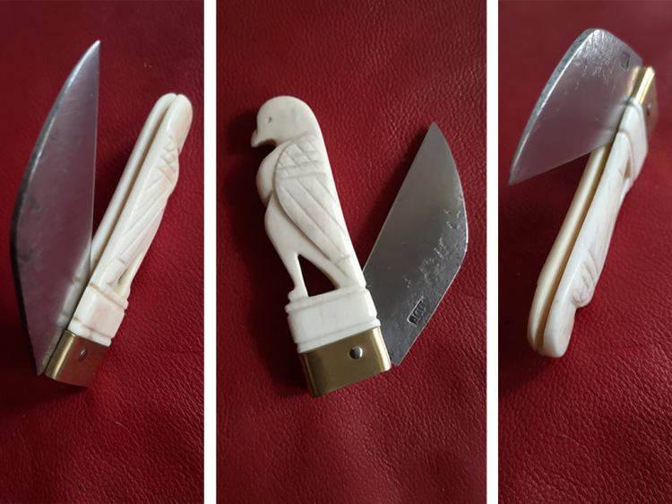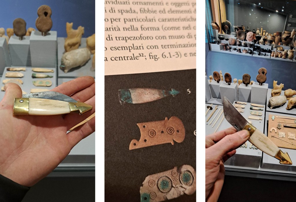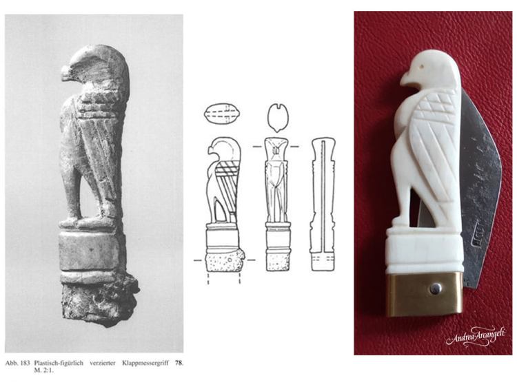 Riproduzione di coltellino con manico in osso a forma di aquila da Augusta Raurica – confronto col reperto
