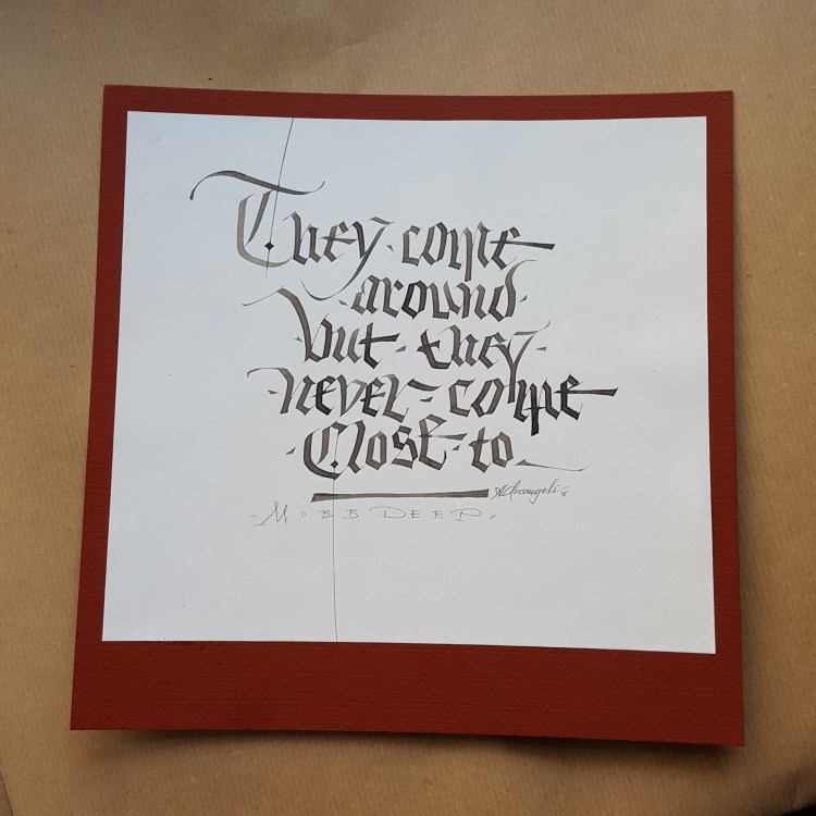 Composizioni calligrafiche contemporanee a pennino e mallo di noce