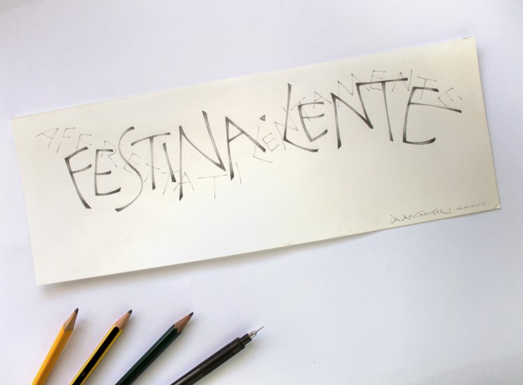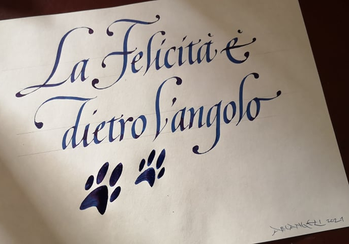 Calligrafia contemporanea, quasi calligraffiti, con penne stilografiche flessibili di inizio novecento