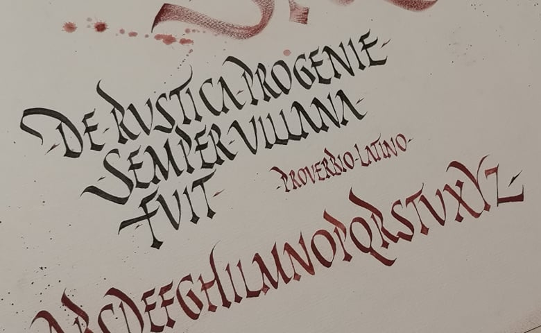 Gotica textura moderna in composizione, con svolazzi. Lavoro del 2016