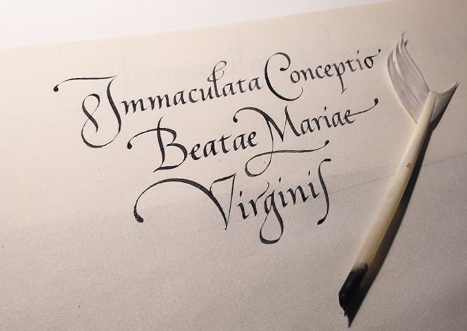 Cancelleresca alla Cattaneo realizzata a penna d’oca ed inchiostro ferrogallico su carta pregiata