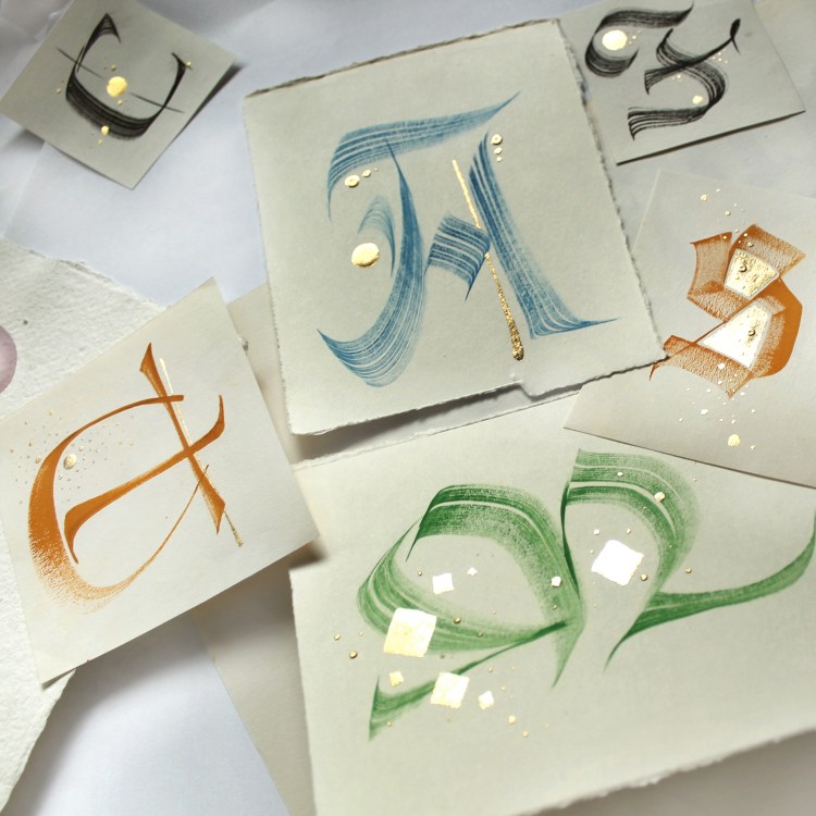 Capolettera calligrafici dorati su carta pregiata
