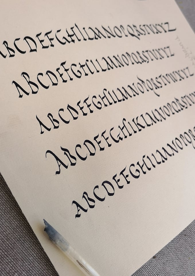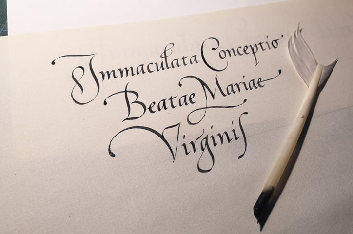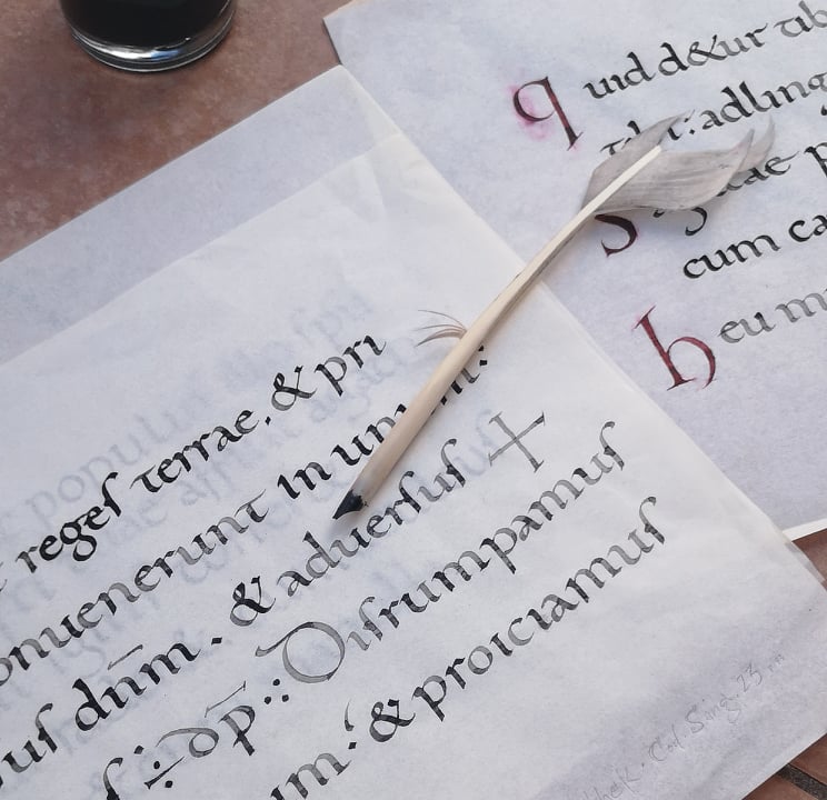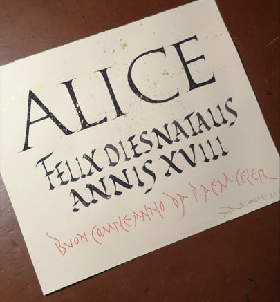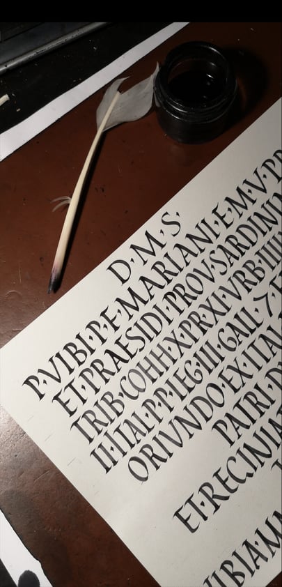 Capitalis Rustica a pennino e ferrogallico su carta pregiata
