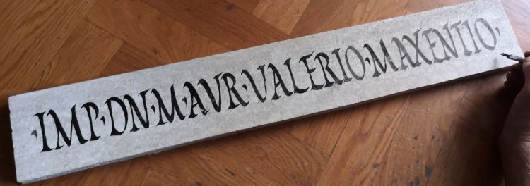 Ordinatio a pennello di un’iscrizione in onore di Marco Aurelio Valerio Massenzio