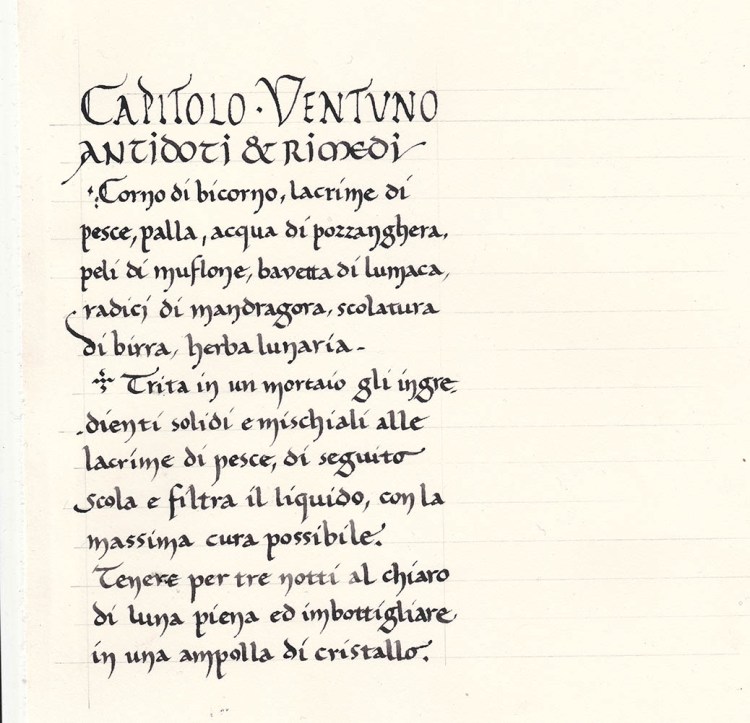 Dettaglio dalla serie su Leonardo da Vinci a cui ho fornito diverso materiale in diverse mani e diversi stili, tra cui la scrittura specchiata leonardesca, che mi ha portato ad imparare a scrivere con la sinistra per l’occasione