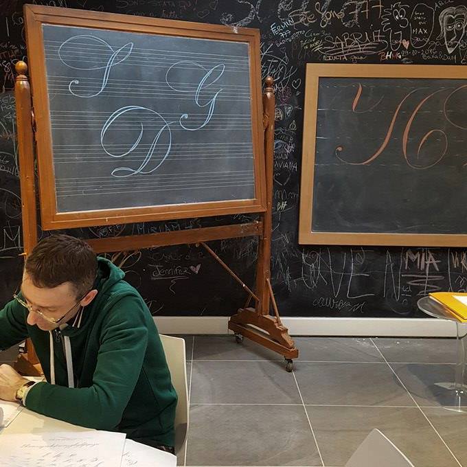 Alla lavagna! Insegnando corsivo inglese per la Aurora penne stilografiche a Torino, 2017