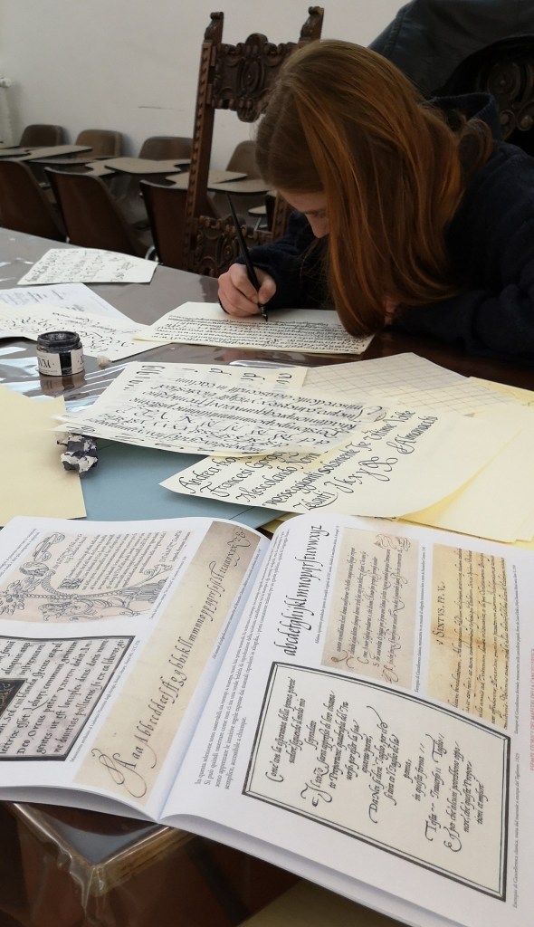 Alunni all’opera, corso sulla Cancelleresca – Scriptorium Paulinum 2019