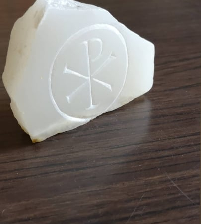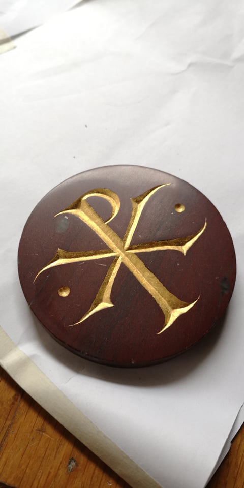 Chi Rho su marmo rosso dorato in foglia oro 24 kt