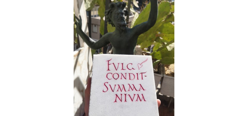 Intaglio a V su ardesia nera ligure – lettere in capitalis rustica ed in capitalis monumentalis